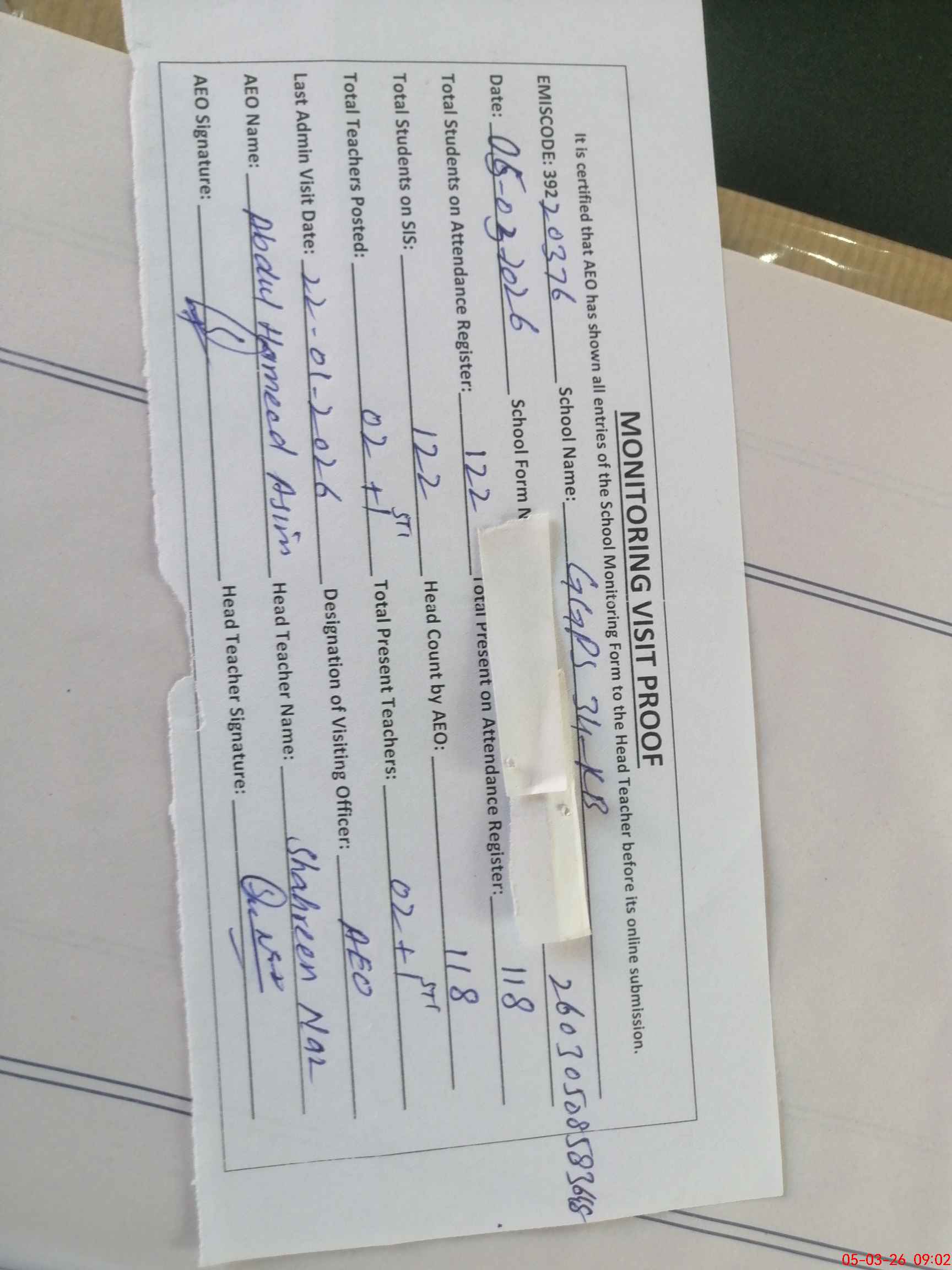 | EMIS Code: 39220376 | Name of School: GGPS 34 KB | |||