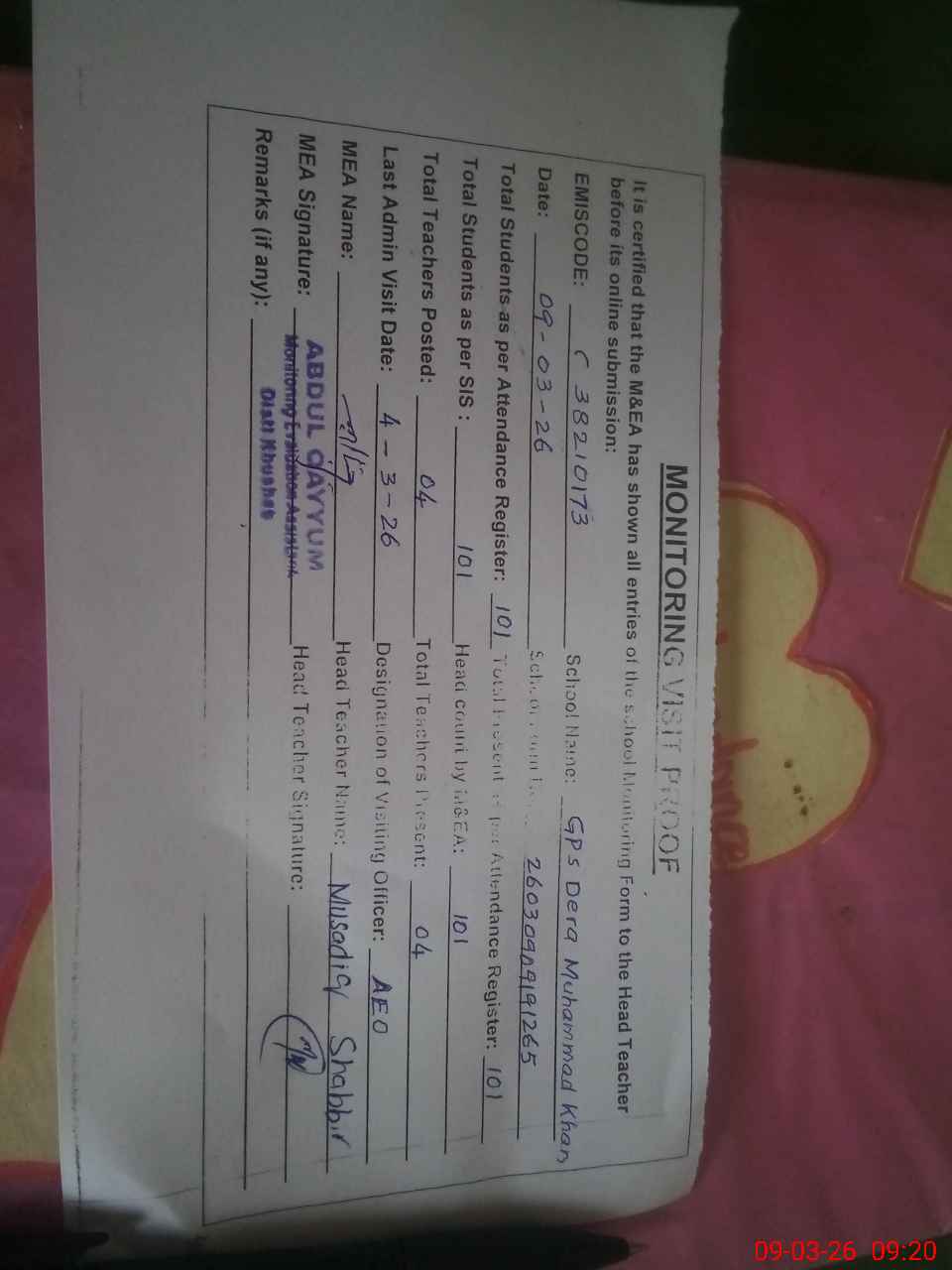 | EMIS Code: 38210173 | Name of School: GPS DERA MUHAMMAD KHAN | |||