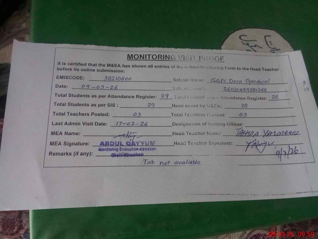 | EMIS Code: 38210600 | Name of School: GGPS DERA GANDWAL | |||