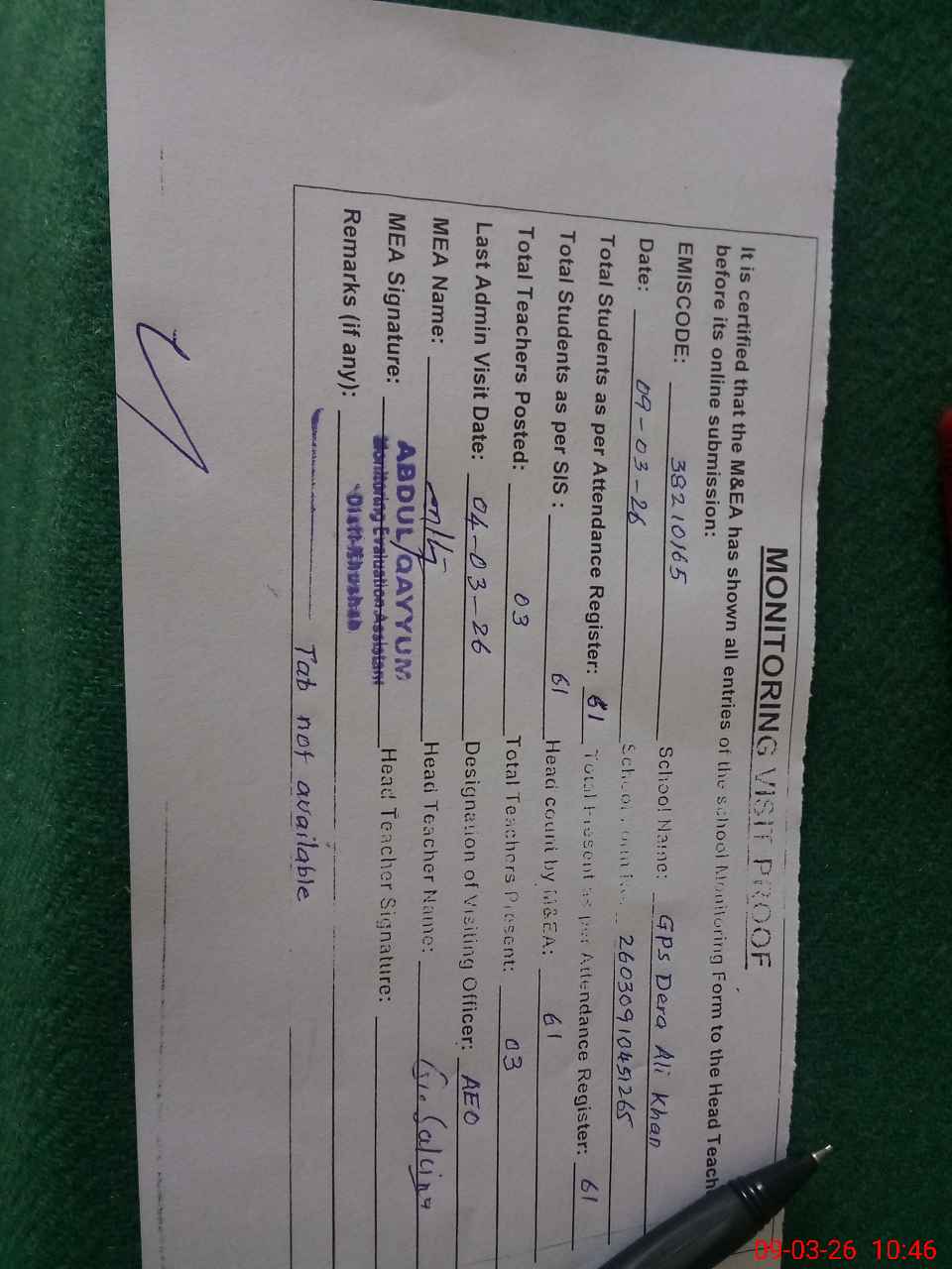 | EMIS Code: 38210165 | Name of School: GPS DERA ALI KHAN | |||