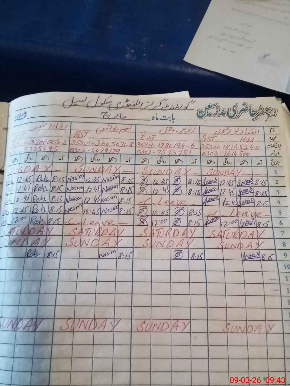 | Name: RE**** MU**** Designation: (School Headmaster's/Headmistress's) EST Phone/Cell Number: 03**** |
