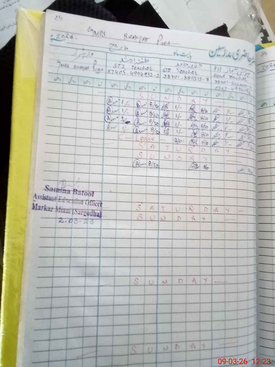 | Name: Me**** Ej**** Designation: (School Headmaster's/Headmistress's) PST Phone/Cell Number: 03**** |