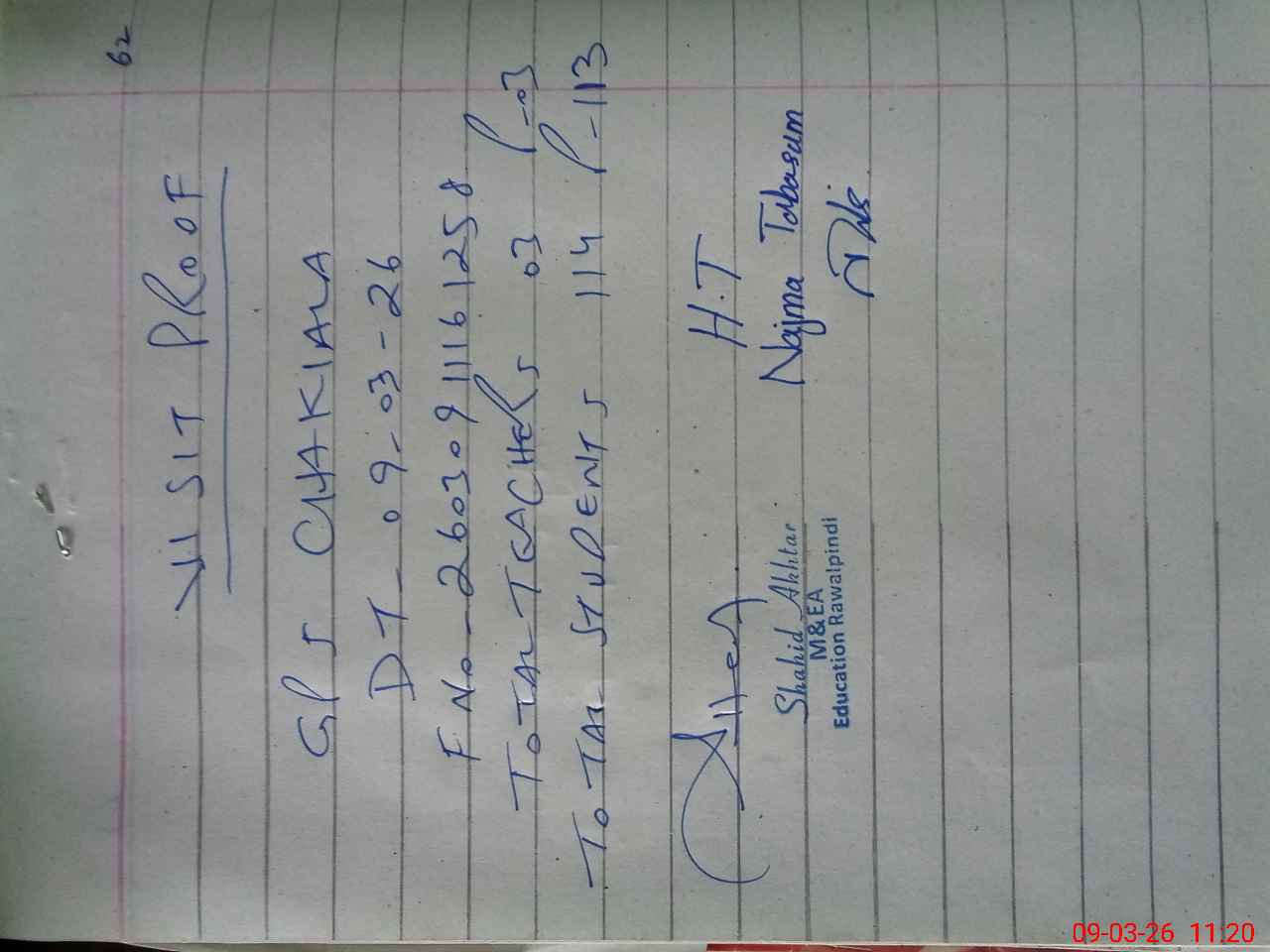 | EMIS Code: 37370195 | Name of School: GPS CHAKIALA | |||