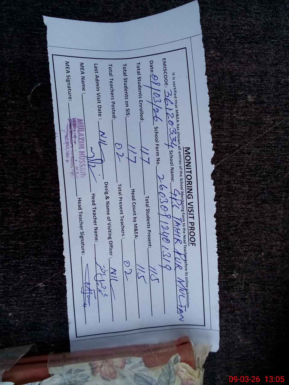 | EMIS Code: 36120334 | Name of School: GPS TAHIR PUR SHUJABAD | |||