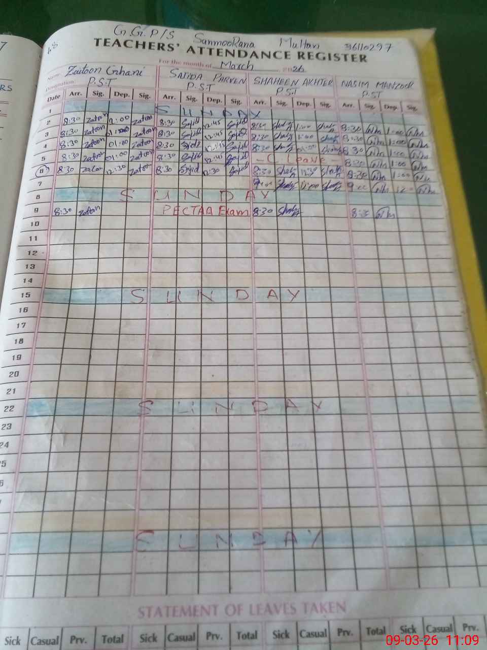 | 33**** | Sa**** Pe**** | PST Science/Maths | Regular | 0 | 0 | 0 | 0 | 0 | 0 | 0 | 0 | 0 | Exam Duty |