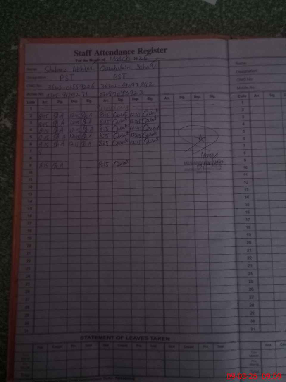 | Name: SH**** AK**** Designation: (School Headmaster's/Headmistress's) PST Phone/Cell Number: 03**** |