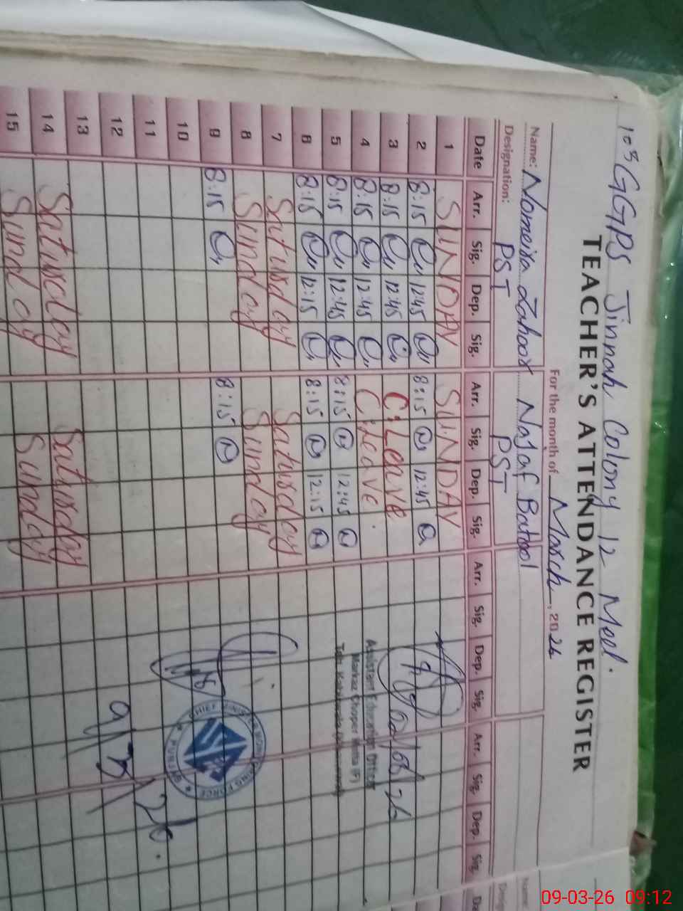 | Name: No**** Za**** Designation: (School Headmaster's/Headmistress's) PST Phone/Cell Number: 03**** |