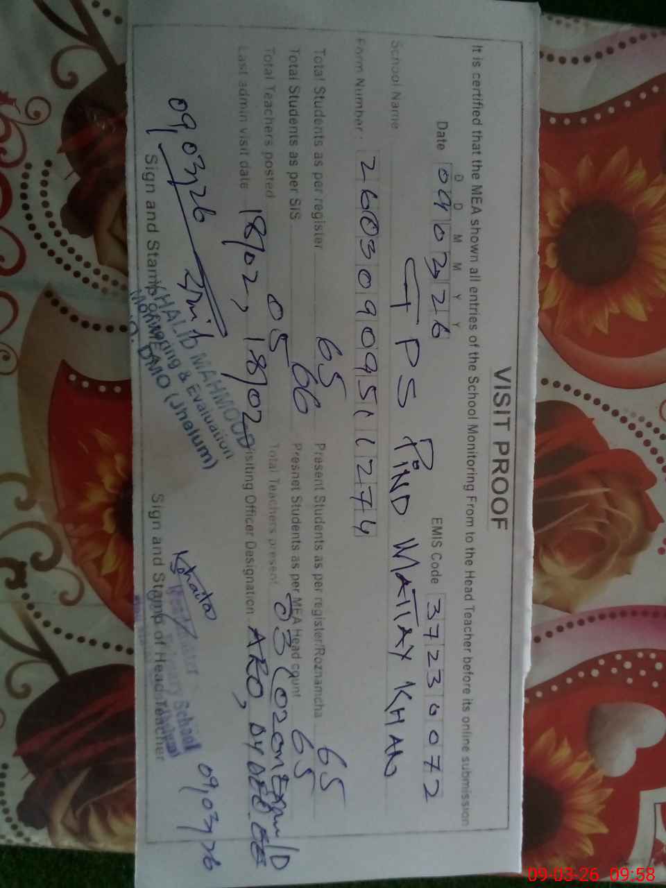 | EMIS Code: 37230072 | Name of School: GPS PIND MATTAY KHAN | |||