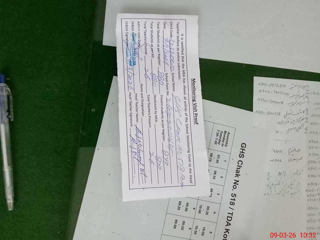 | EMIS Code: 32320010 | Name of School: GHS CHAK NO.518 TDA | |||