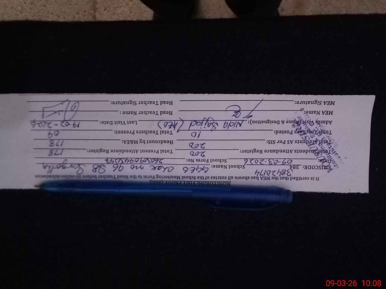 | Attendance Register | Head Teacher | MEA with School | Visit Proof |