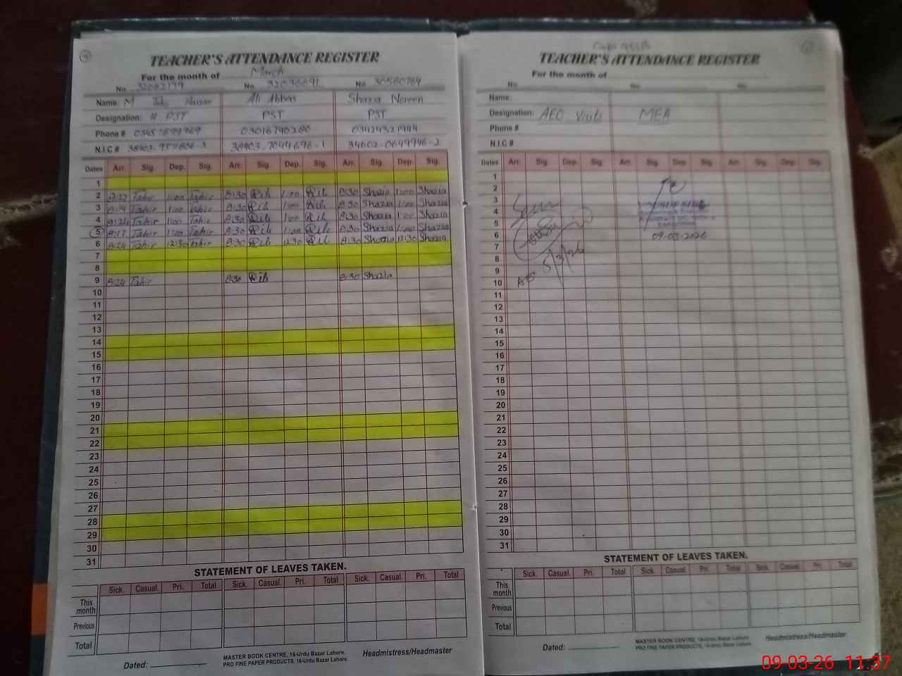 | Name: MU**** TA**** HA**** Designation: (School Headmaster's/Headmistress's) PST Phone/Cell Number: 03**** |