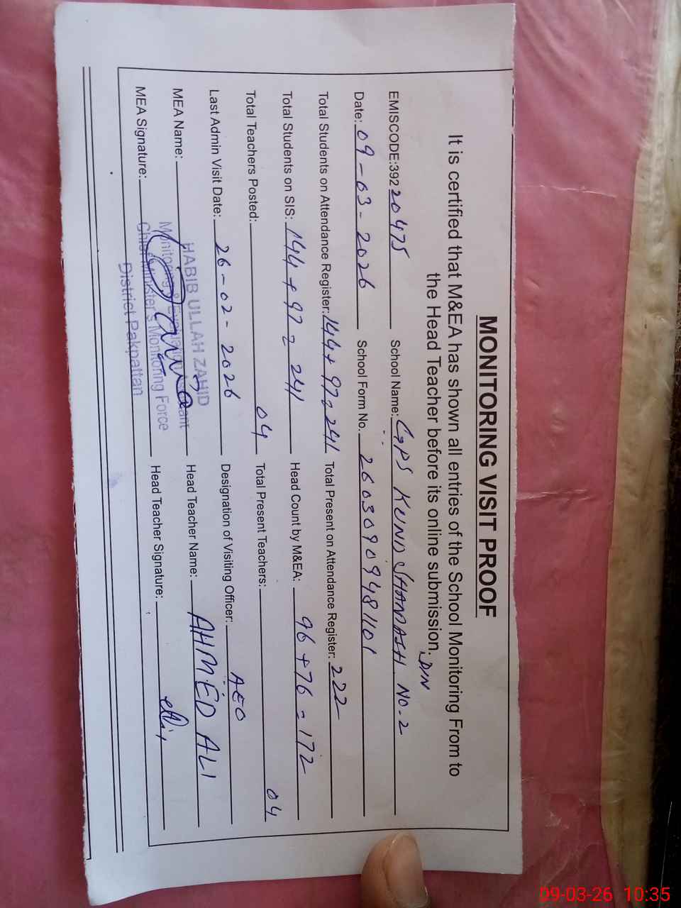 | EMIS Code: 39220475 | Name of School: GPS KUND SHAMAS DIN NO 1 | |||