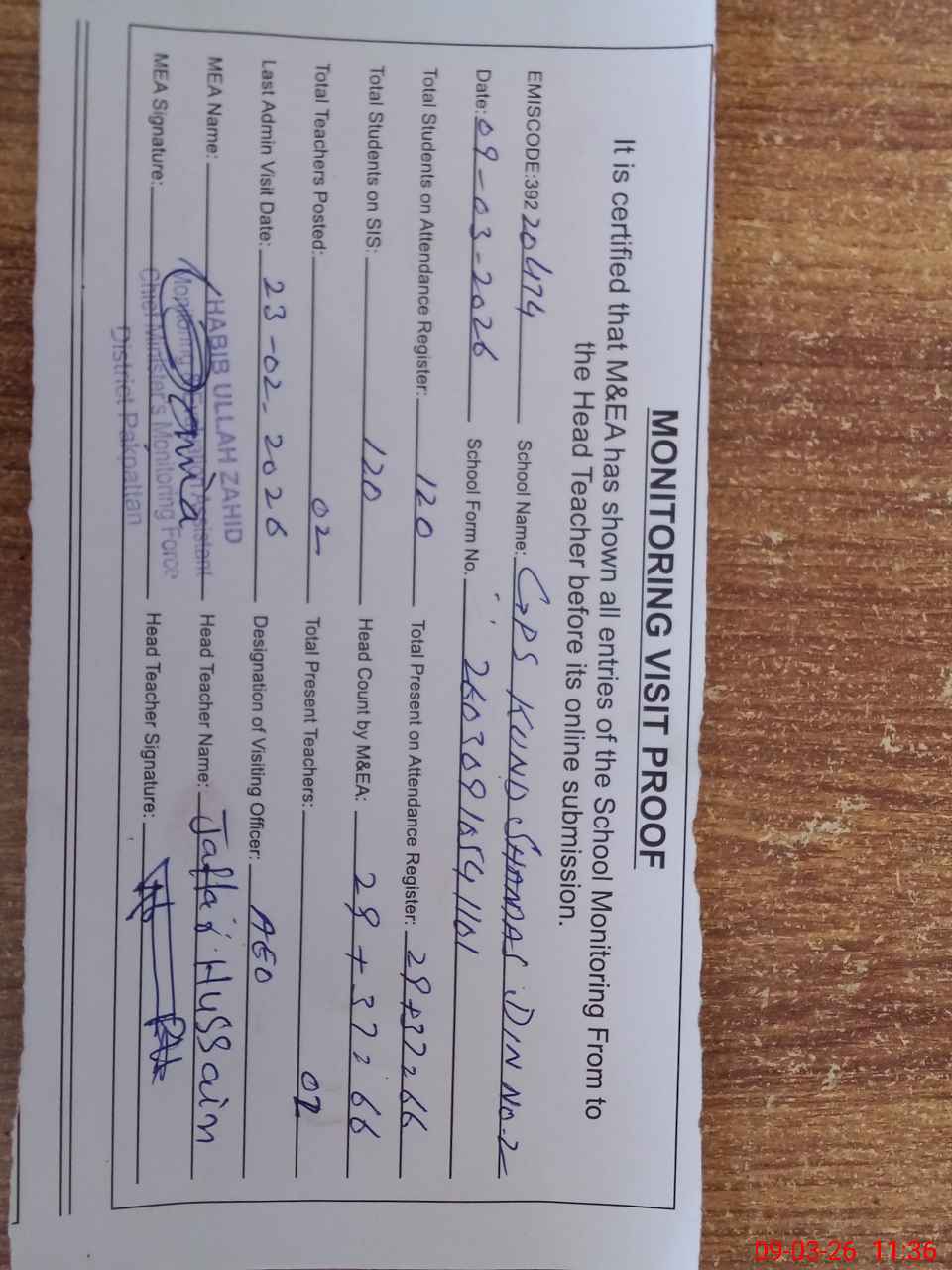 | EMIS Code: 39220474 | Name of School: GPS KUND SHAMAS DIN NO 2 | |||