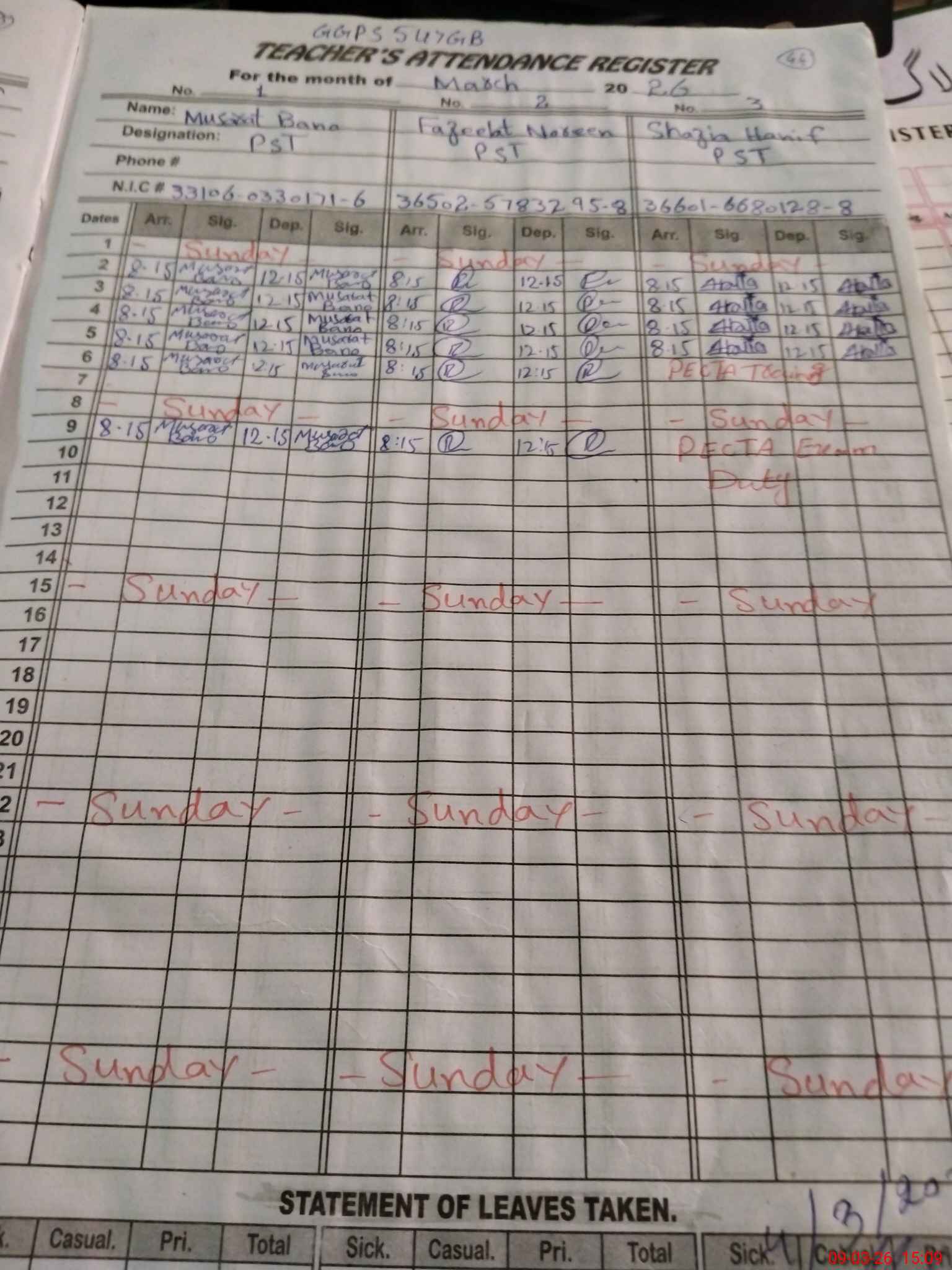 | Name: MU**** BA**** Designation: (School Headmaster's/Headmistress's) PST Phone/Cell Number: 03**** |