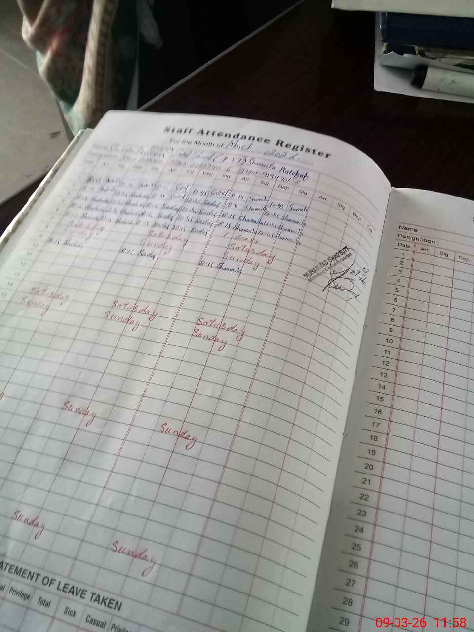 | CNIC | Full Name | Designation | R/C | Absence During Last Calender Month |