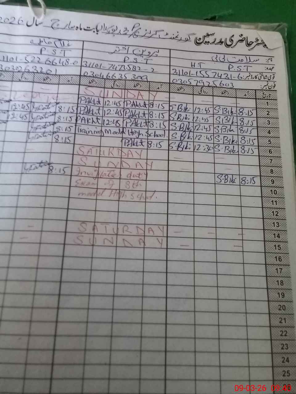 | 31**** | Pa**** Ak**** | PST Arts | Regular | 0 | 0 | 0 | 0 | 0 | 0 | 0 | 0 | 0 | Exam Duty |