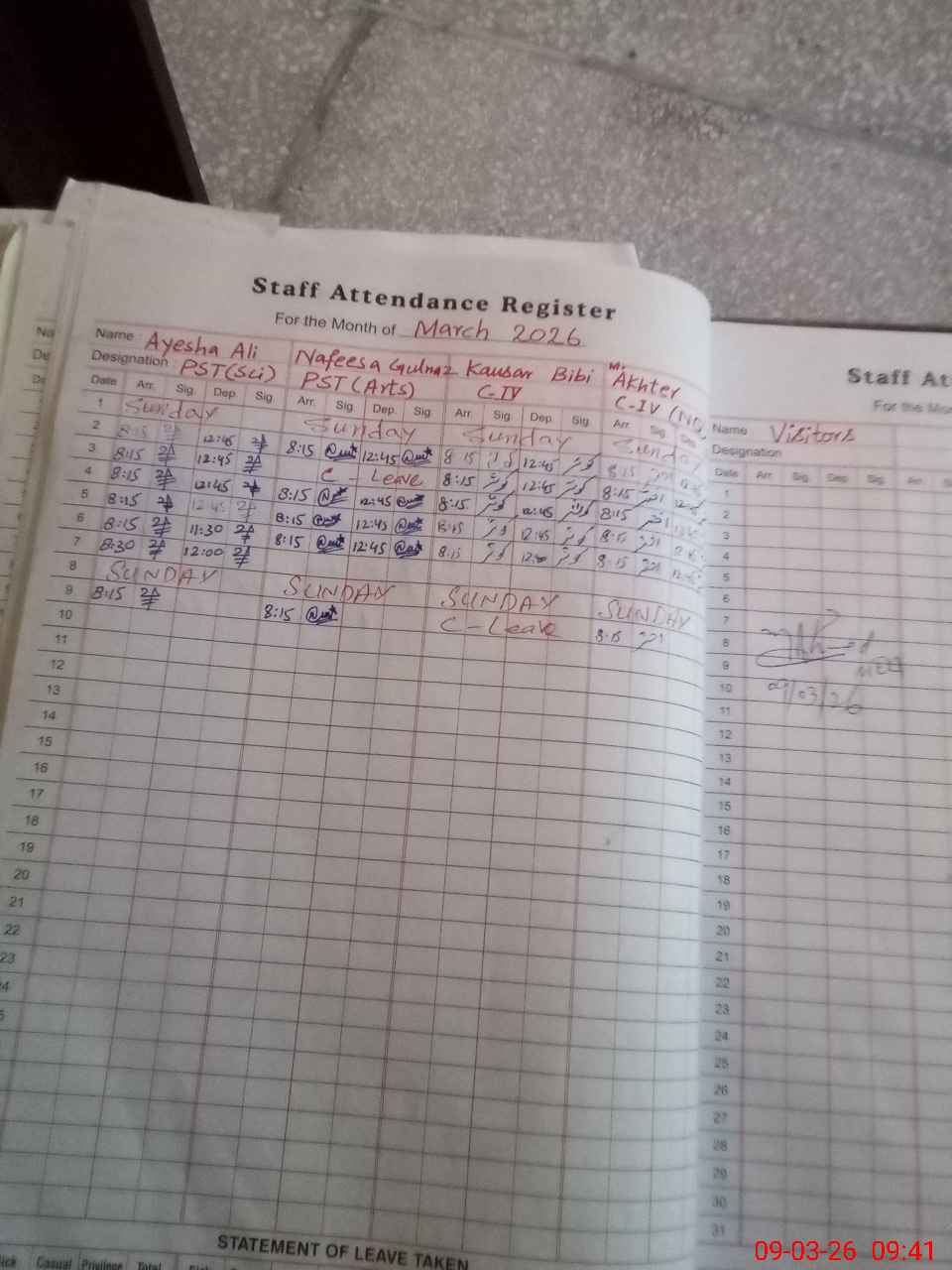 | Leave | Duty | Absent | Maternity | Medical | Ex- Pak |