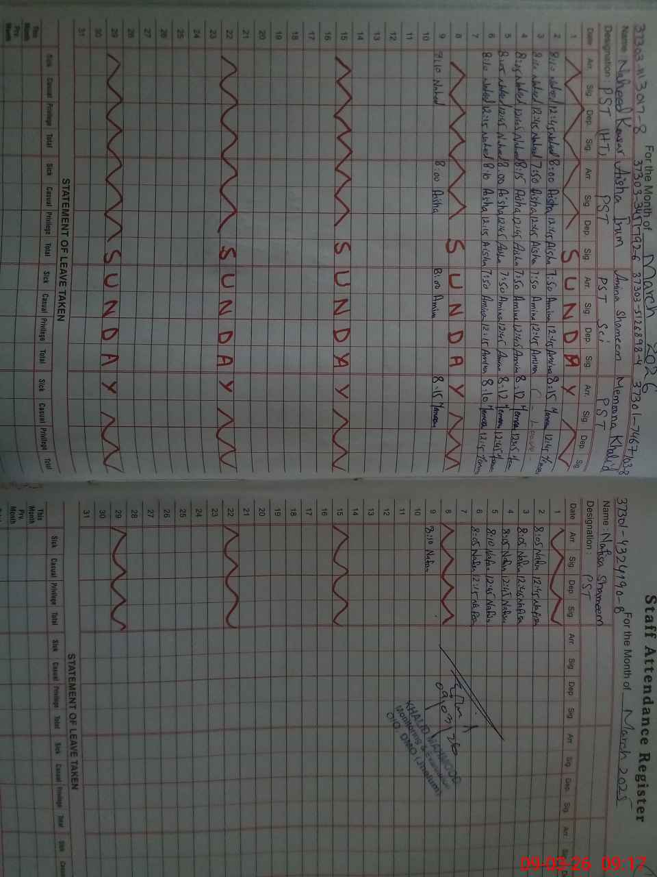 | CNIC | Full Name | Designation | R/C | Absence During Last Calender Month |
