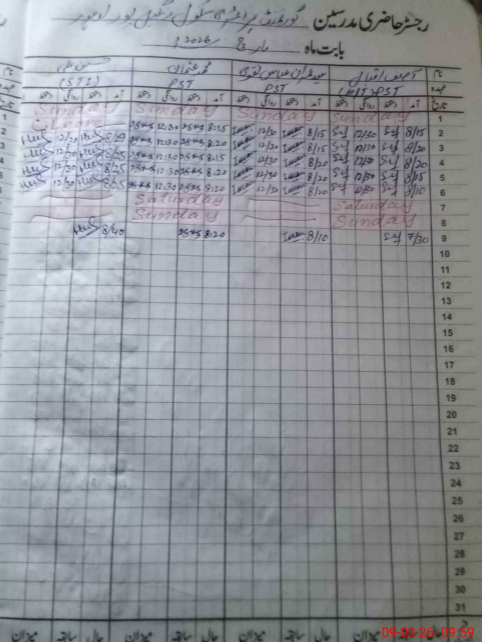 | CNIC | Full Name | Designation | R/C | Absence During Last Calender Month |
