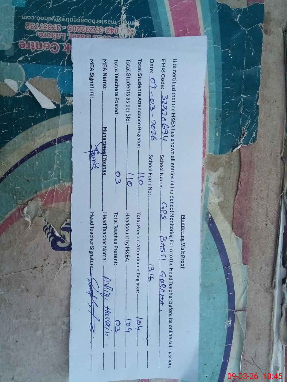 | EMIS Code: 32320694 | Name of School: GPS BASTI GORAHA | |||