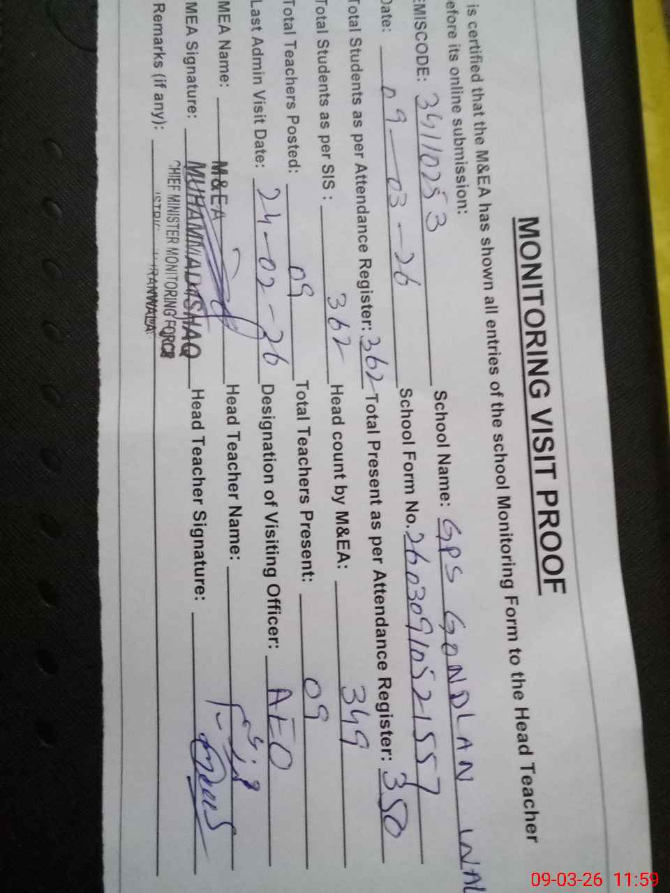 | EMIS Code: 34110253 | Name of School: GPS GONDLAN WALA | |||