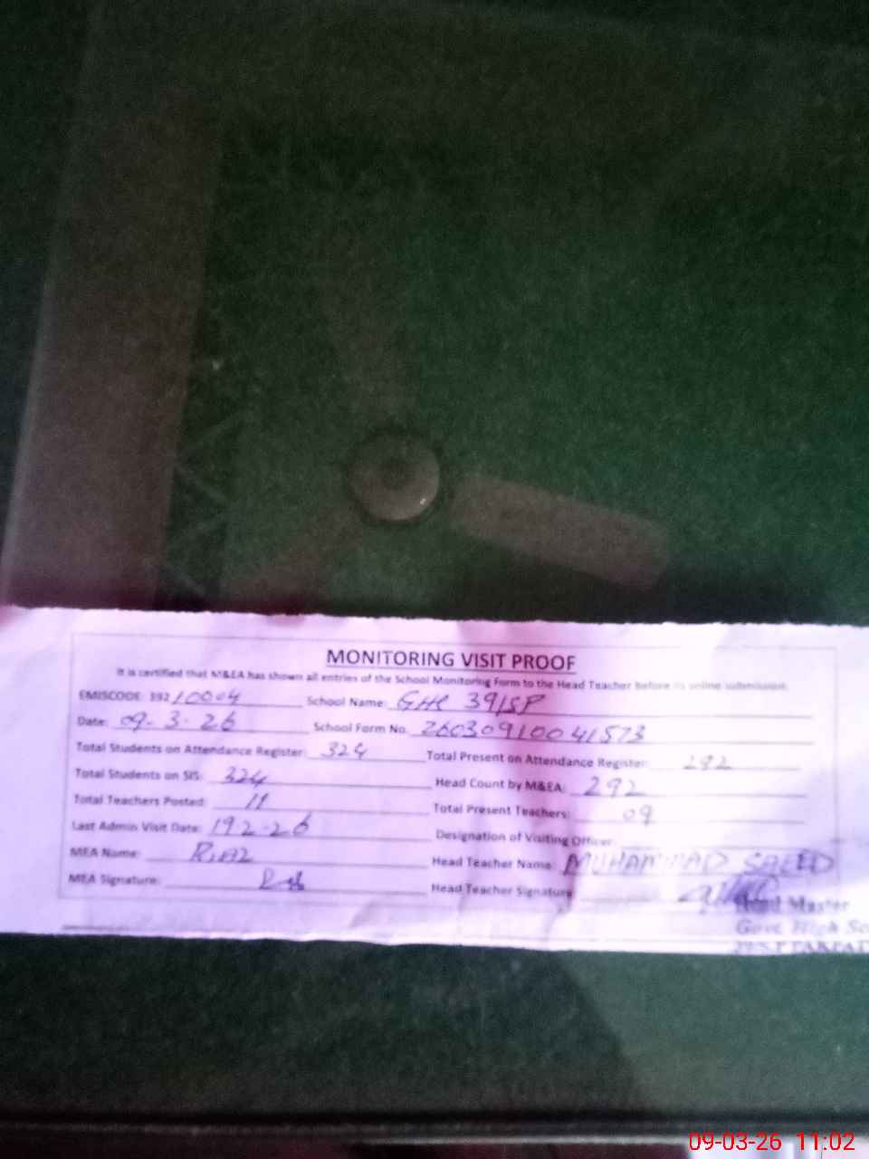 | EMIS Code: 39210004 | Name of School: GHS 39/S.P | |||