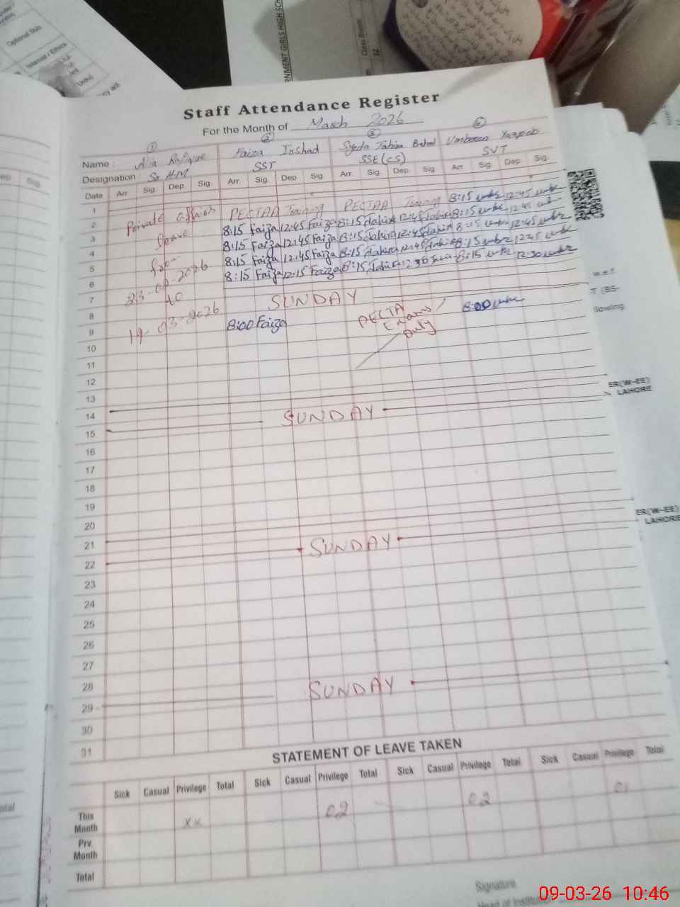 | 36**** | Sy**** Si**** Ba**** | PST Science/Maths | Regular | 0 | 0 | 0 | 0 | 0 | 0 | 0 | 0 | 0 | Maternity |