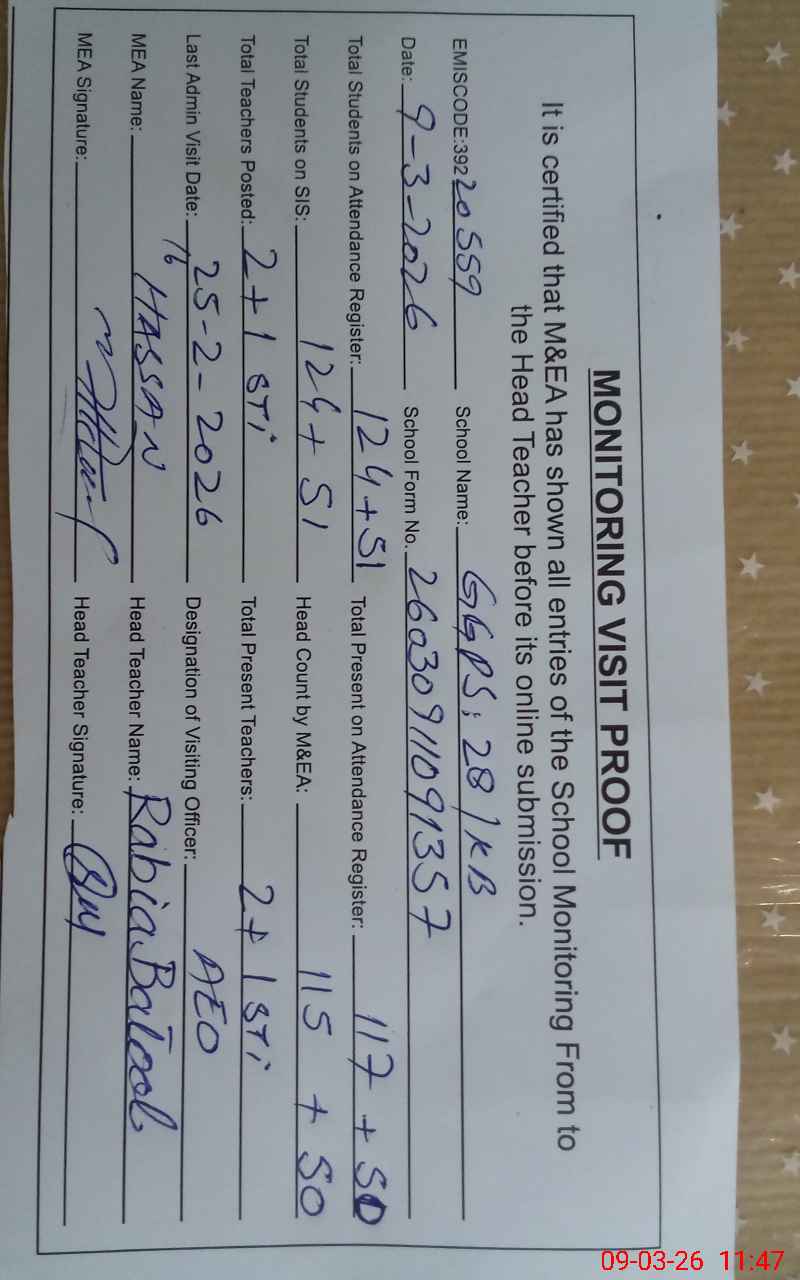 | EMIS Code: 39220559 | Name of School: GGPS 28/KB | |||