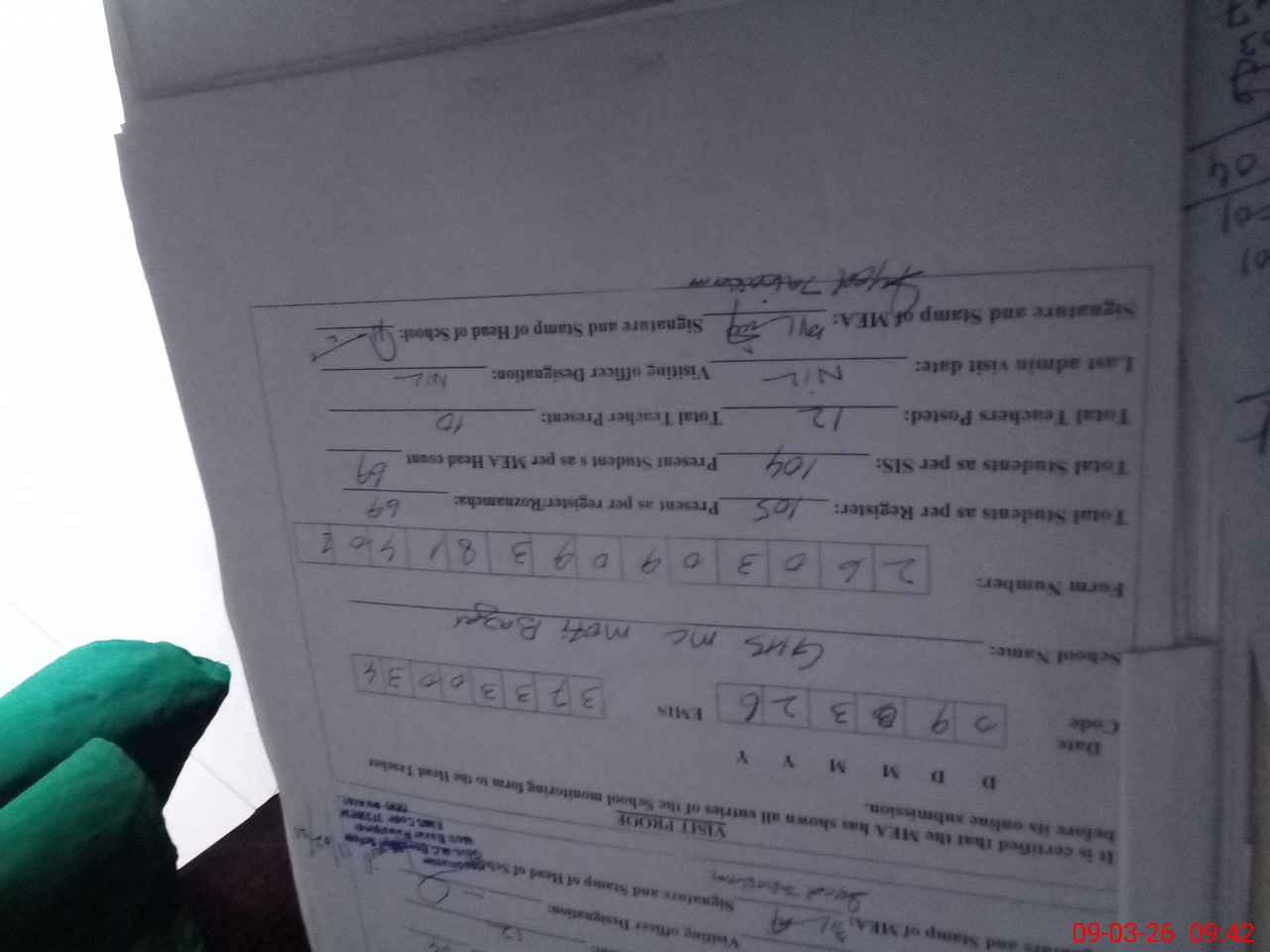 | Certified that this School was Inspected by the Undersigned MEA/DMO Today and the Information Stated Above is as Per Record. | |||||