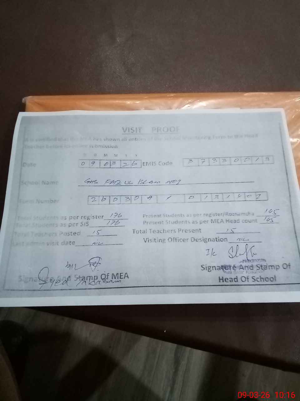 | EMIS Code: 37330013 | Name of School: GHS FAIZ-UL-ISLAM NO. 1 | |||