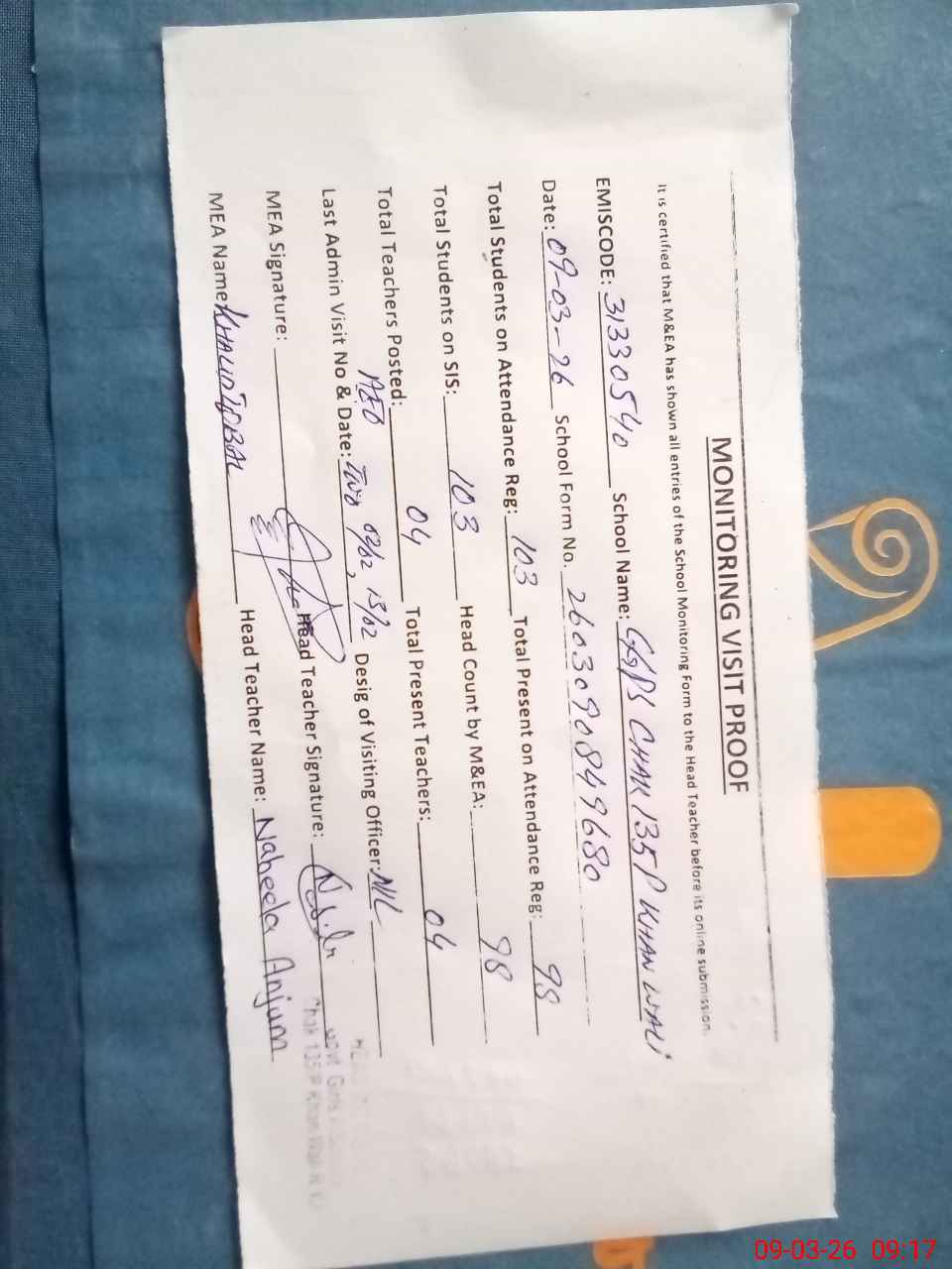 | EMIS Code: 31330540 | Name of School: GGPS CHAK 135/P KHAN WALI | |||