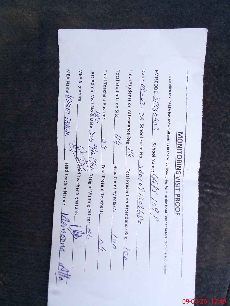 | EMIS Code: 31330603 | Name of School: GGPS 109/P | |||