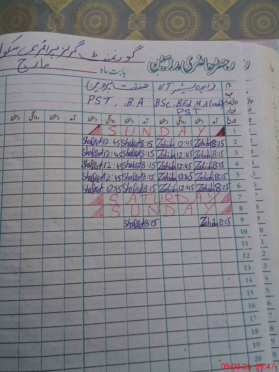 | Name: Za**** Ba**** Designation: (School Headmaster's/Headmistress's) PST Phone/Cell Number: 03**** |