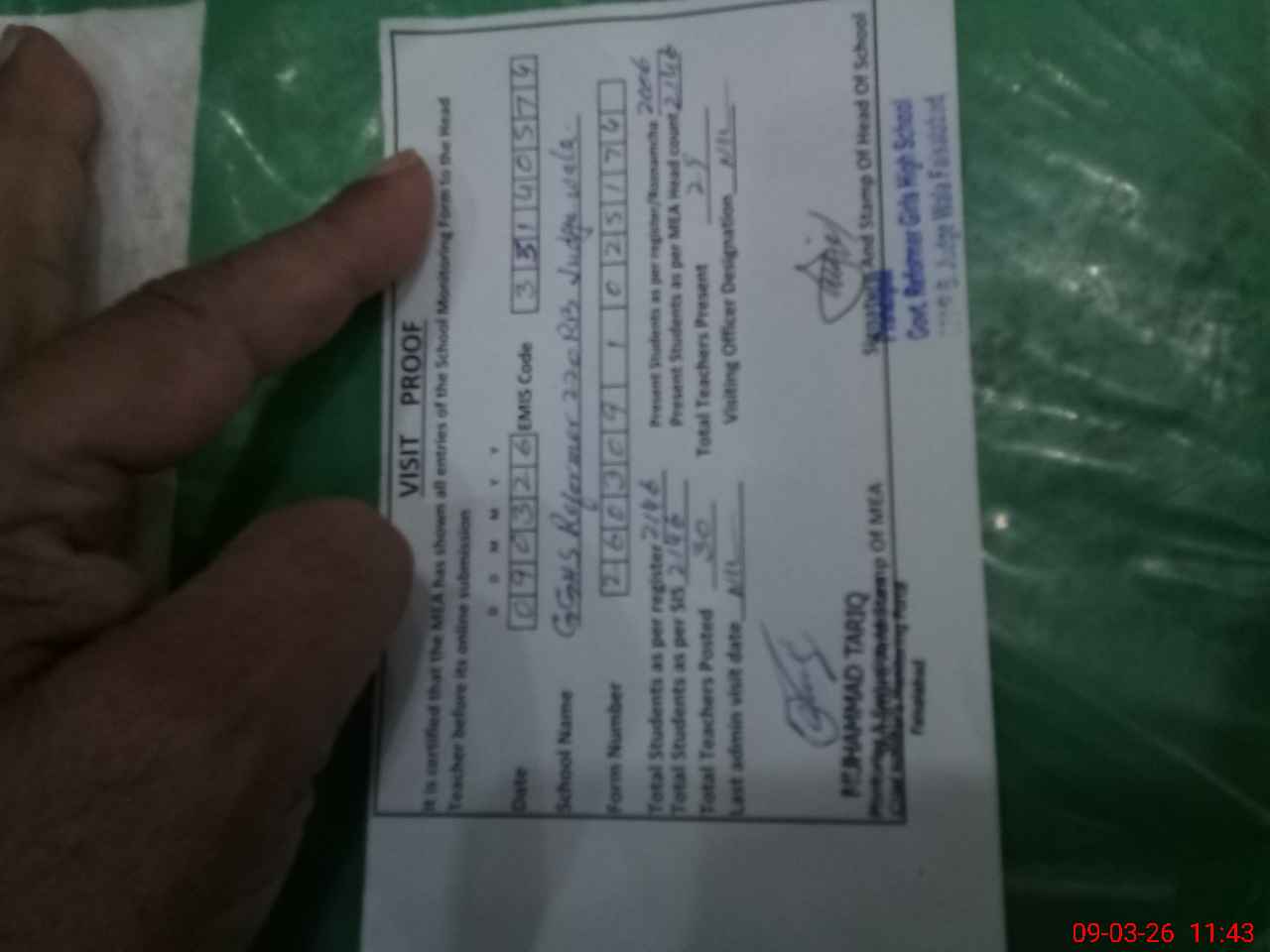 | Attendance Register | Head Teacher | MEA with School | Visit Proof |