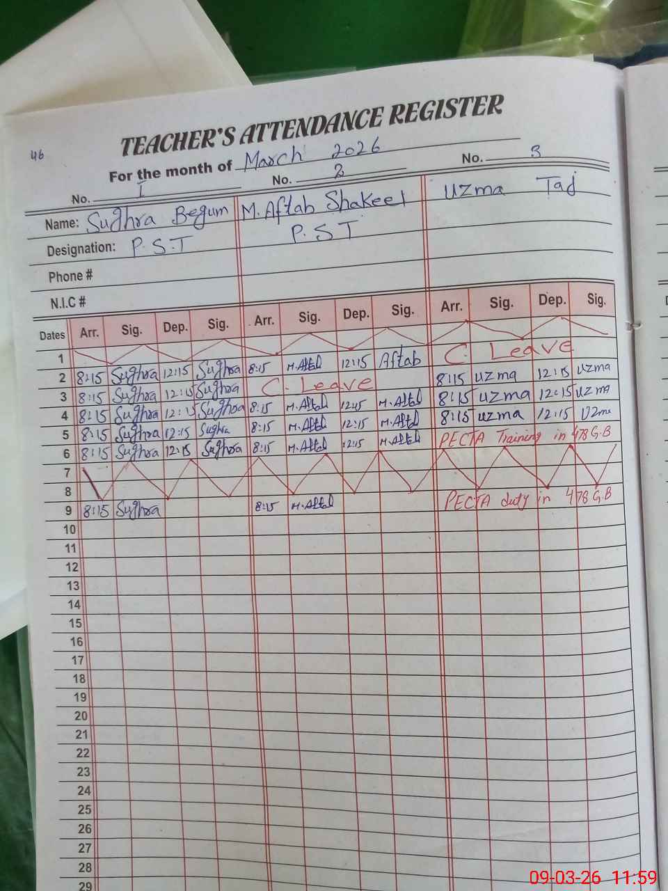 | 33**** | Uz**** Ta**** UdDi**** | PST Science/Maths | Regular | 0 | 0 | 0 | 0 | 0 | 0 | 0 | 0 | 0 | Exam Duty |