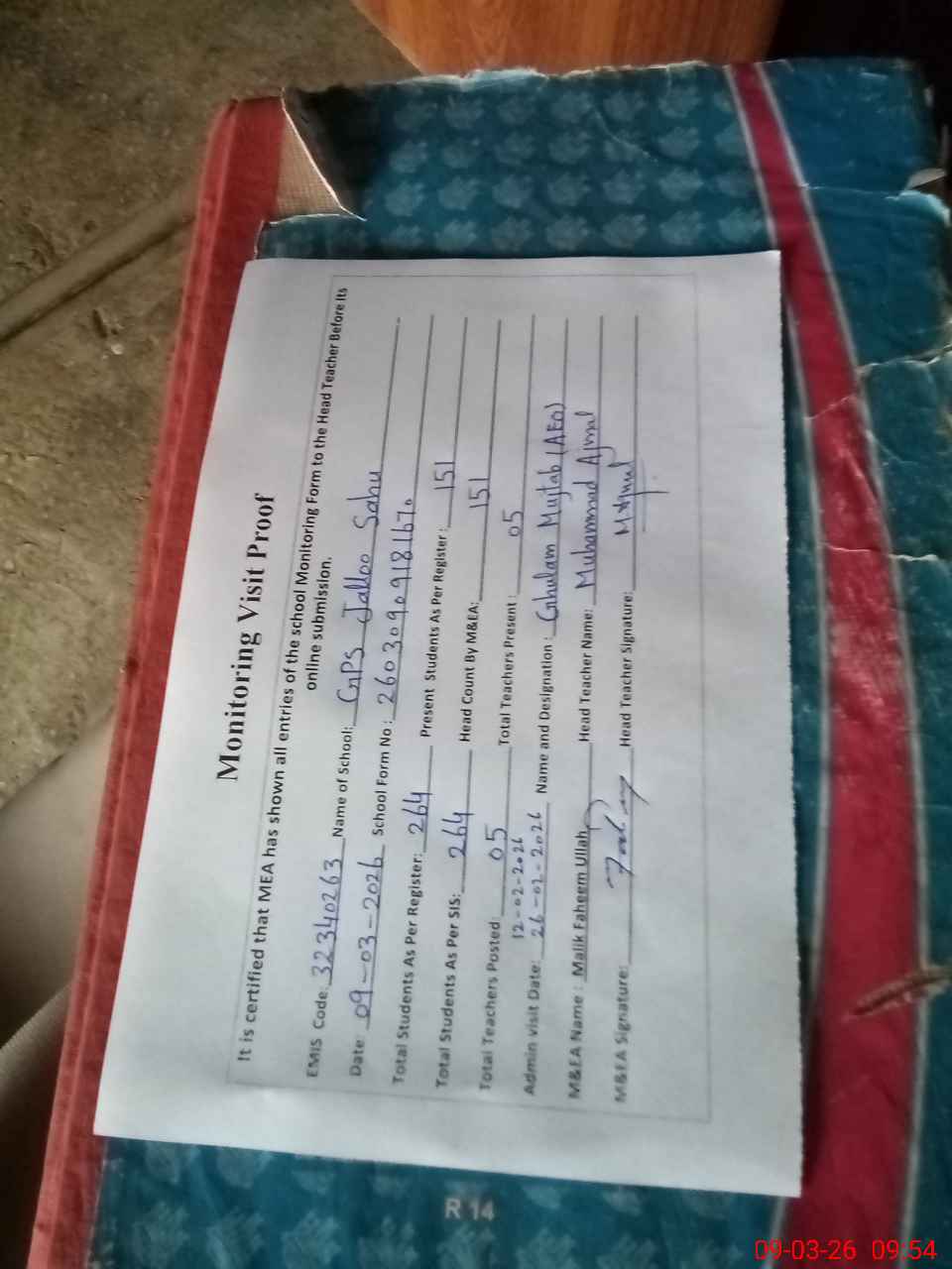 | EMIS Code: 32340263 | Name of School: GPS JALOO SAHU | |||