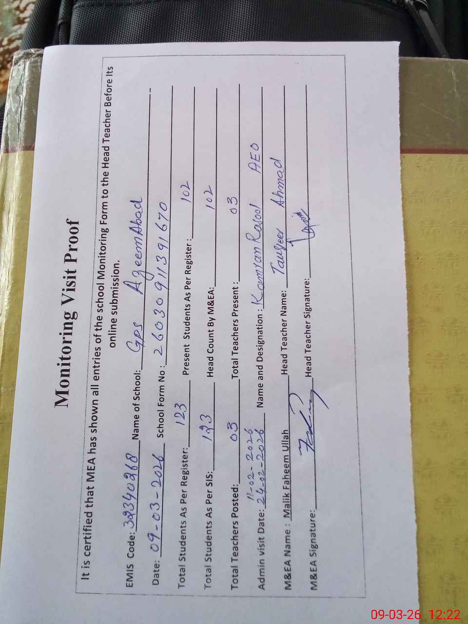 | EMIS Code: 32340268 | Name of School: GPS AZEEM ABAD | |||
