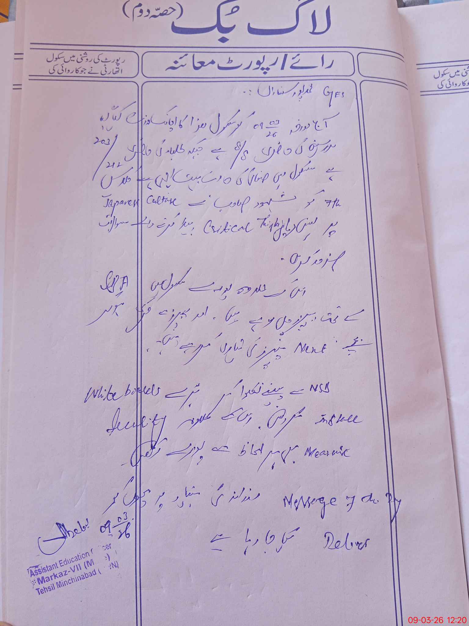 | Certified that this School was Inspected by the Undersigned MEA/DMO Today and the Information Stated Above is as Per Record. | |||||