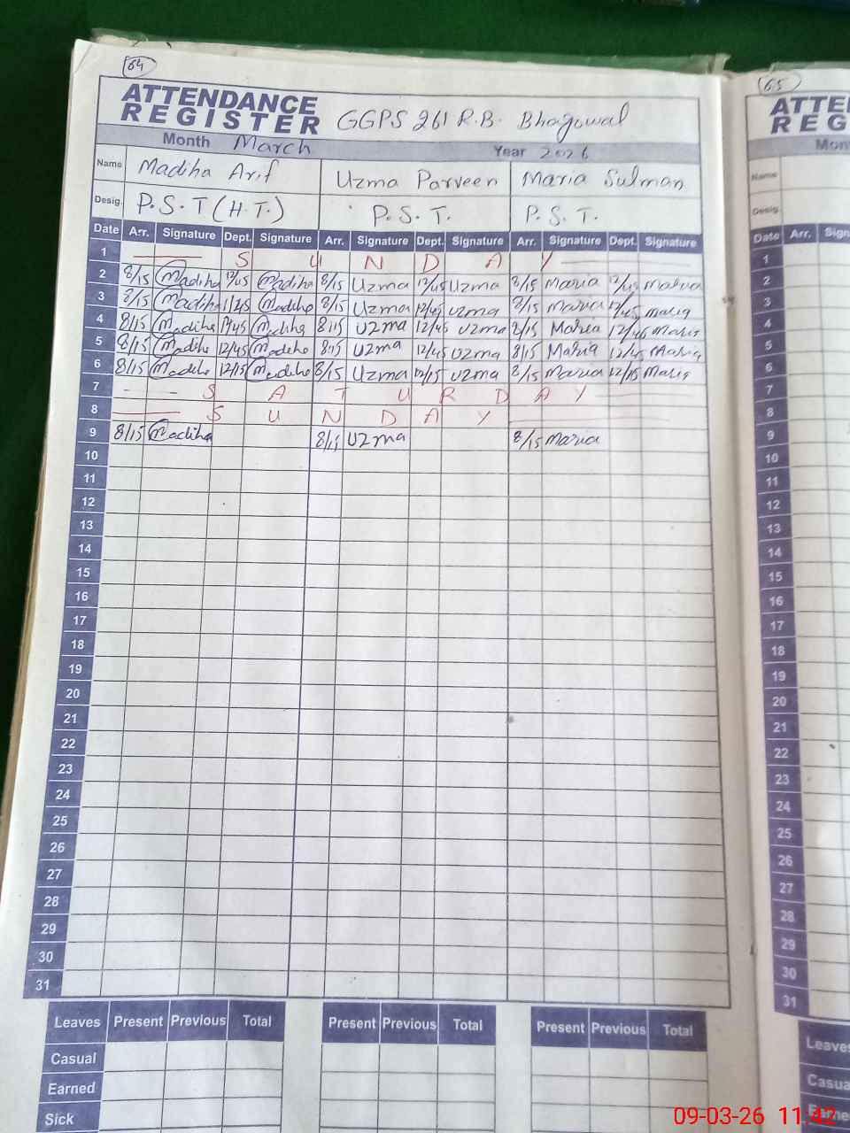 | Monitoring Date: 09-03-2026 | Start Time: 09-03-2026 11:05 AM | End Time: 09-03-2026 11:43 AM | Name of MEA: NA**** AN**** | |