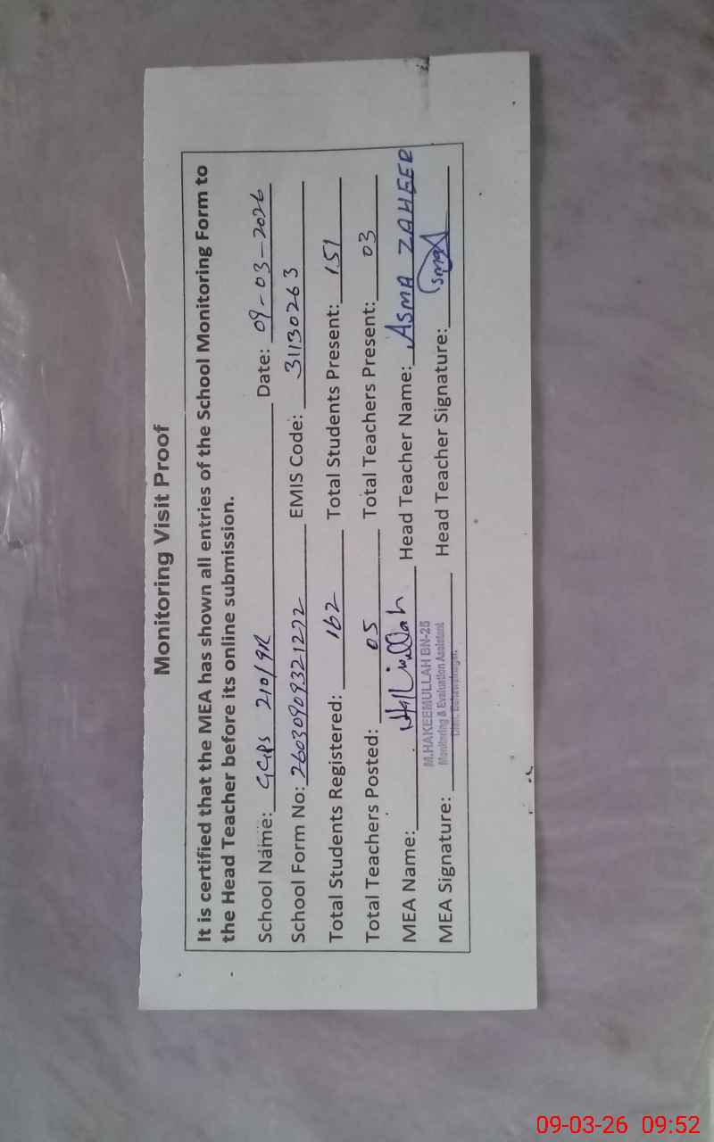 | EMIS Code: 31130263 | Name of School: GGPS CHAK NO. 210/9-R | |||