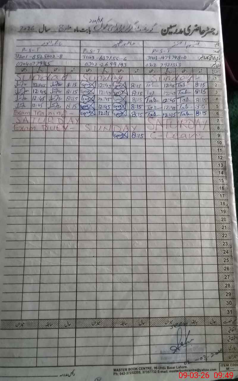 | 31**** | Zu**** Ur**** | PST Science/Maths | Regular | 1 | 0 | 0 | 0 | 0 | 0 | 0 | 0 | 1 | Casual |