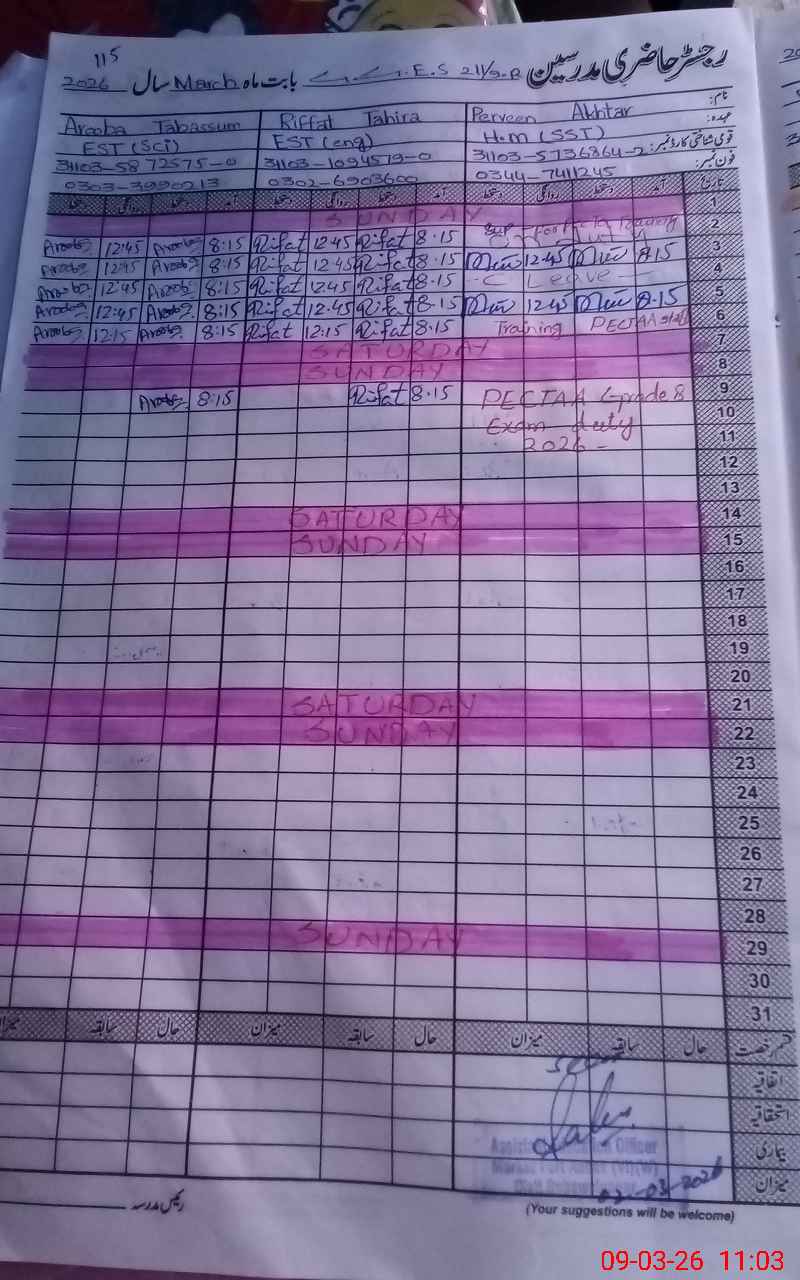| 31**** | Pe**** Ak**** | SST Arts | Regular | 1 | 0 | 0 | 0 | 0 | 0 | 0 | 0 | 1 | Exam Duty |