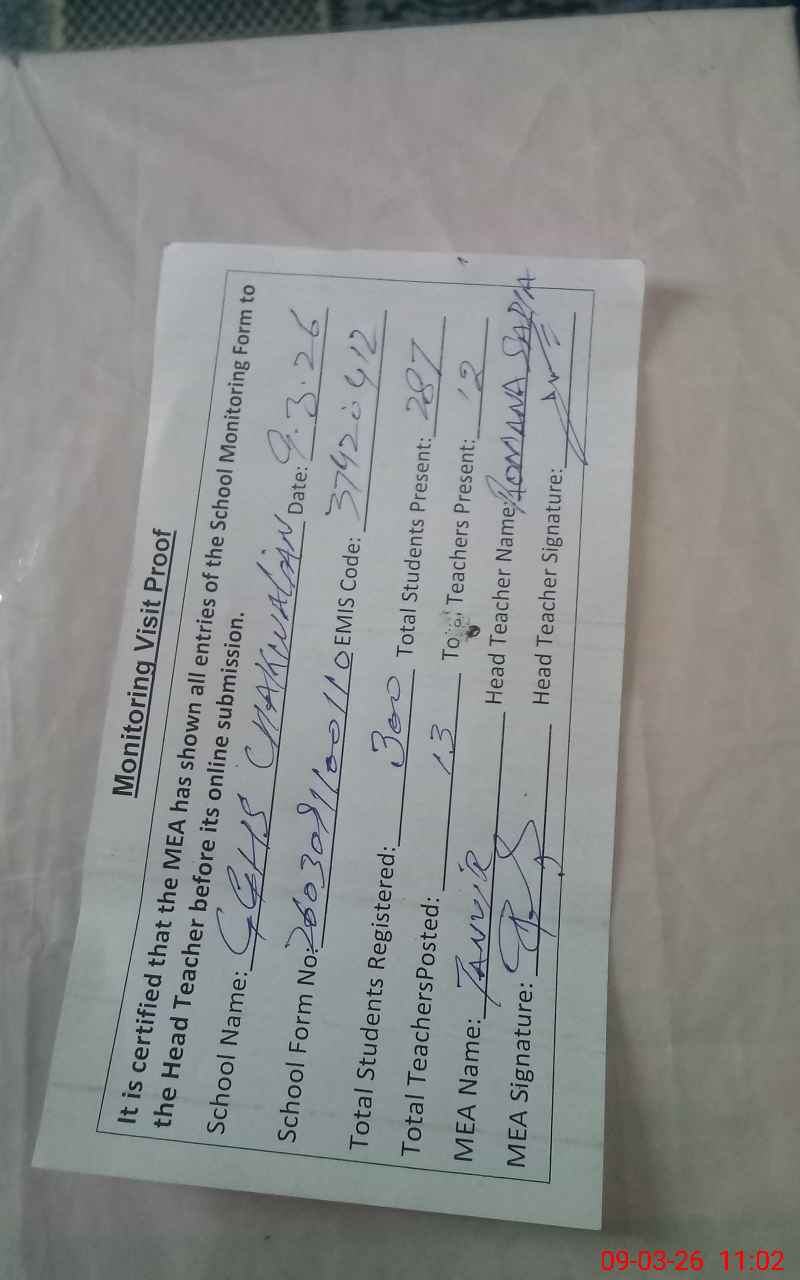 | EMIS Code: 37420412 | Name of School: GGHS CHAKWALIAN TALAGANG | |||
