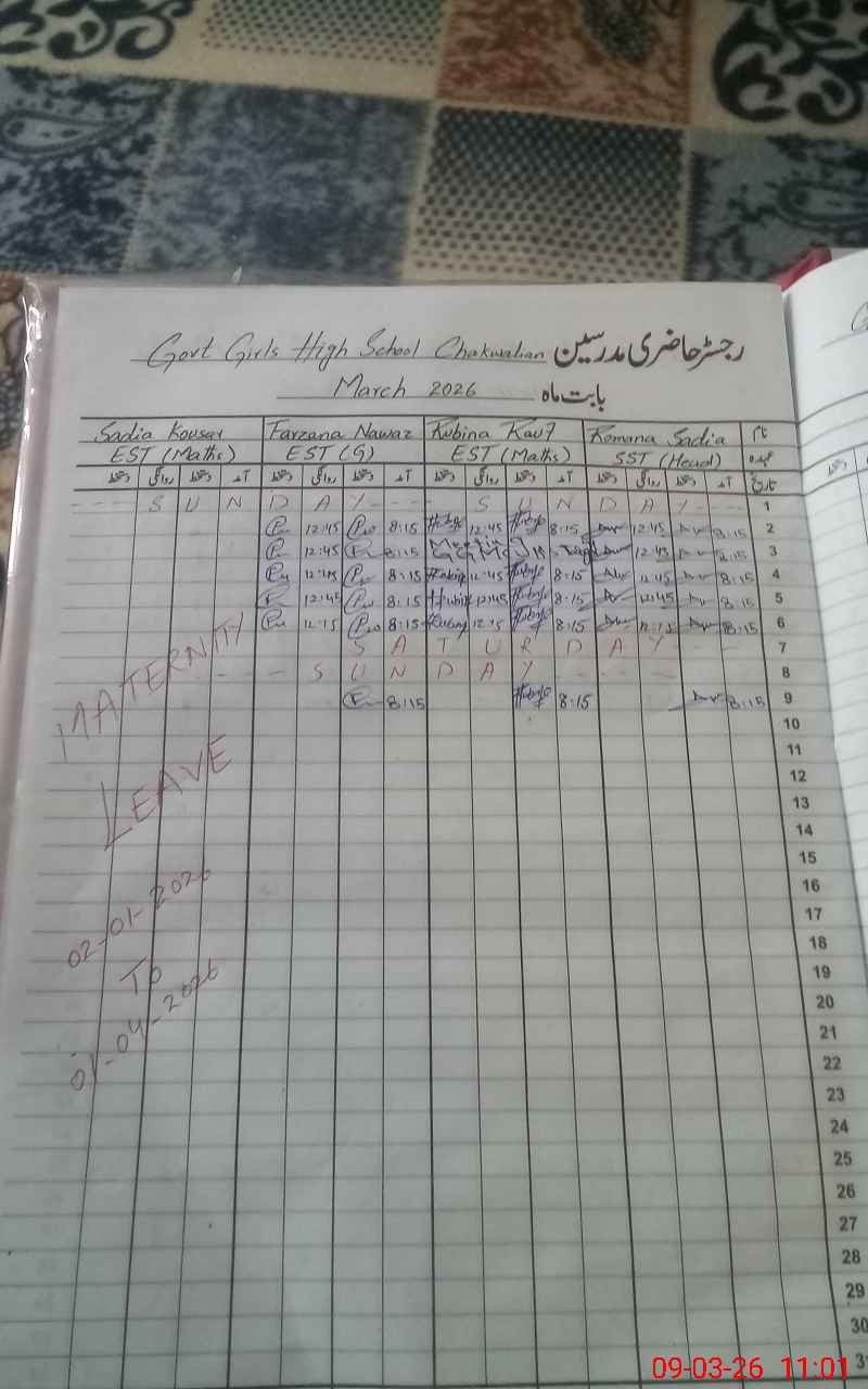| Leave | Duty | Absent | Maternity | Medical | Ex- Pak |