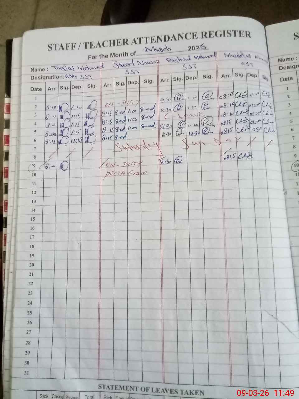 | 36**** | Sa**** Na**** | SST Arts | Regular | 0 | 0 | 0 | 0 | 0 | 0 | 0 | 0 | 0 | Exam Duty |