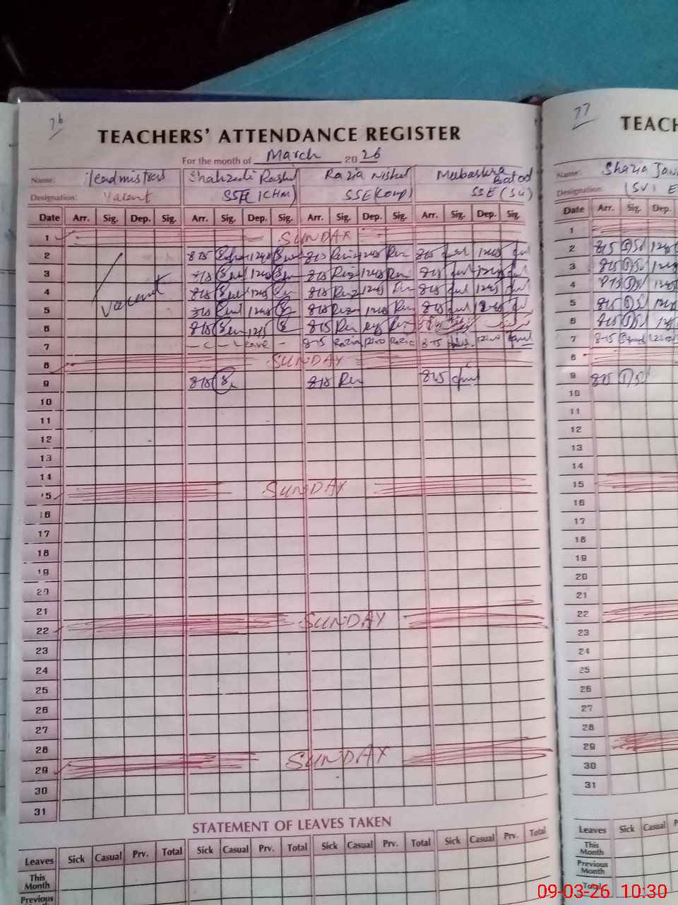 | 33**** | Sa**** Za**** | EST Science | Regular | 0 | 0 | 0 | 0 | 0 | 0 | 0 | 0 | 0 | Absent (Un-Authorized) |