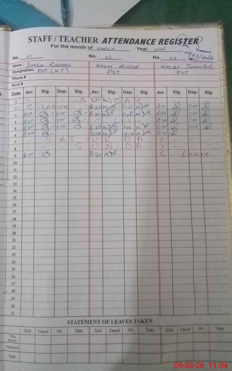 | 13**** | Is**** Al**** Sh**** | PST Science/Maths | Regular | 0 | 0 | 0 | 0 | 0 | 0 | 0 | 0 | 0 | On Training |