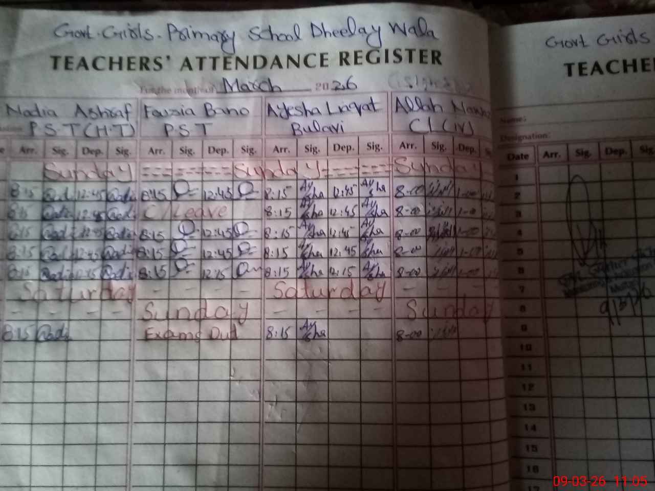 | 36**** | Fo**** Ba**** | PST Arts | Regular | 0 | 0 | 0 | 0 | 0 | 0 | 0 | 0 | 0 | Exam Duty |