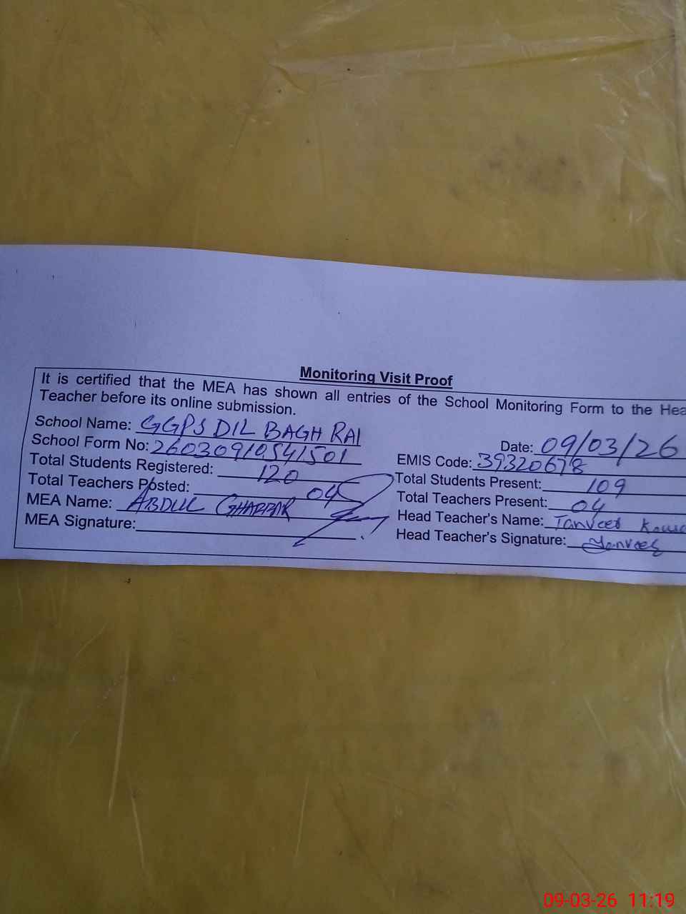 | EMIS Code: 39320678 | Name of School: GGPS DIL BAGH RAI | |||