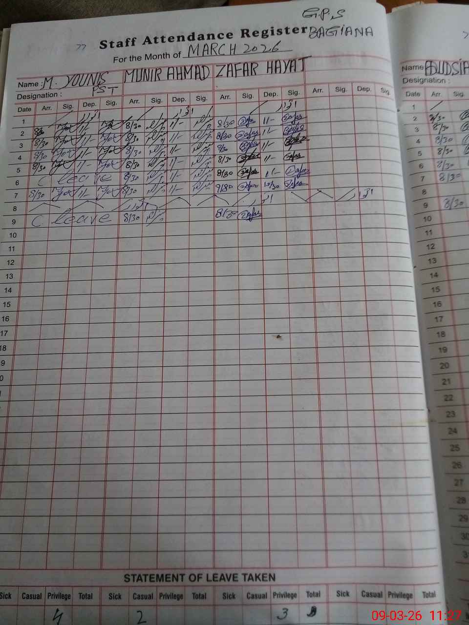 | Leave | Duty | Absent | Maternity | Medical | Ex- Pak |